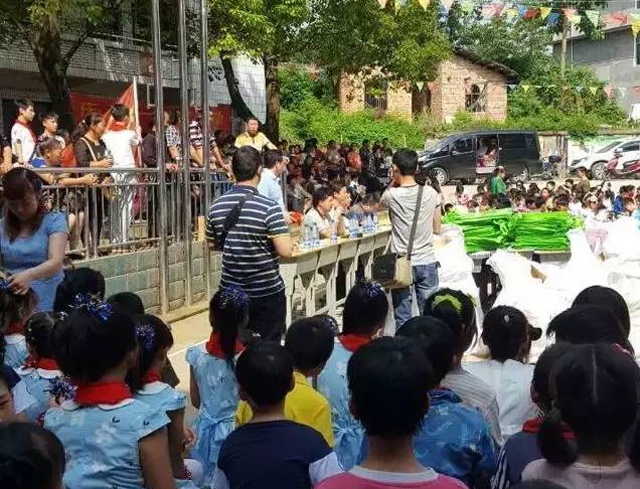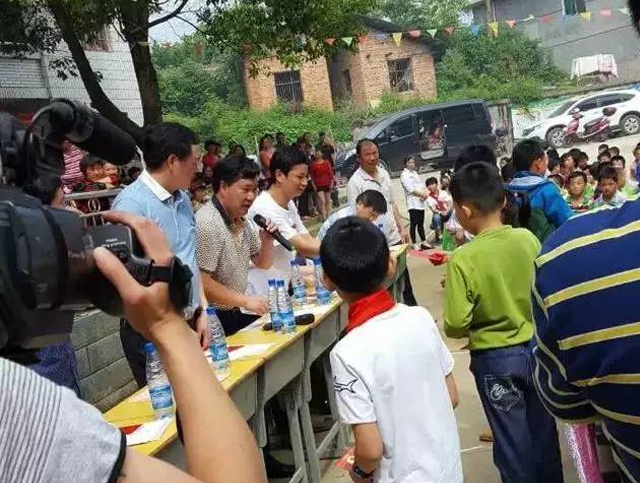 5.31日,新邵縣教育局、愛心企業湖南省陽光箱包有限公司主要領導,為幫助邊遠山區學校改善教學條件,為貧困學生解決必需的學習用品,幫助貧困學生樹立正確的人生觀,增強戰勝困難的信心和決心,由新邵縣教育局學生資助管理中心出資15000元,資助貧困學生30人,每人500元,另捐贈給學校價值10000元的教學用臺式電腦2臺、激光打印機1臺;由愛心企業湖南省陽光箱包有限公司旗下湖南省著名品牌“陽光8點”捐獻價值 28000元的小學一至三年級學生書包268個。