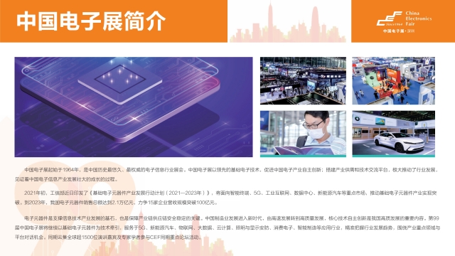 中國電子展起始于1964年,是中國歷史最悠久、最權(quán)威的電子信息行業(yè)展會。中國電子展以領(lǐng)先的基礎(chǔ)電子技術(shù),促進中國電子產(chǎn)業(yè)自主創(chuàng)新;搭建產(chǎn)業(yè)供需和技術(shù)交流平臺,極大推動了行業(yè)發(fā)展,見證著中國電子信息產(chǎn)業(yè)發(fā)展壯大的成長的過程。