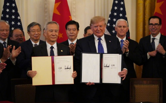 中美貿易摩擦終于有了初步結果,當地時間1月15日,經過中美兩國經貿團隊的共同努力,在平等和相互尊重的基礎上,中美雙方在美國首都華盛頓正式簽署第一階段經貿協議。協議文本包括序言、知識產權、技術轉讓、食品和農產品、金融服務、匯率和透明度、擴大貿易、雙邊評估和爭端解決、最終條款九個章節。同時,雙方達成一致,美方將履行分階段取消對華產品加征關稅的相關承諾,實現加征關稅由升到降的轉變。