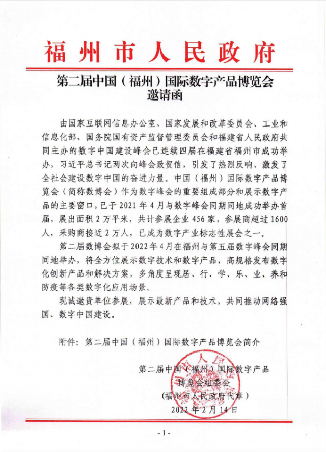 由國家互聯網信息辦公室、國家發展和改革委員會、工業和信息化部、國務院國有資產監督管理委員會和福建省人民政府共同主辦的數字中國建設峰會已連續四屆在福建省福州市成功舉辦,習近平總書記兩次向峰會致賀信,引發了熱烈反響、激發了全社會建設數字中國的奮進力量。中國(福州)國際數字產品博覽會(簡稱數博會)作為數字峰會的重要組成部分和展示數字產品的主要窗口,已于2021年4月與數字峰會同期同地成功舉辦首屆,展出面積2萬平米,共計參展企業456家,參展商超過1600人,采購商接近2萬人,已成為數字產業標志性展會之一。