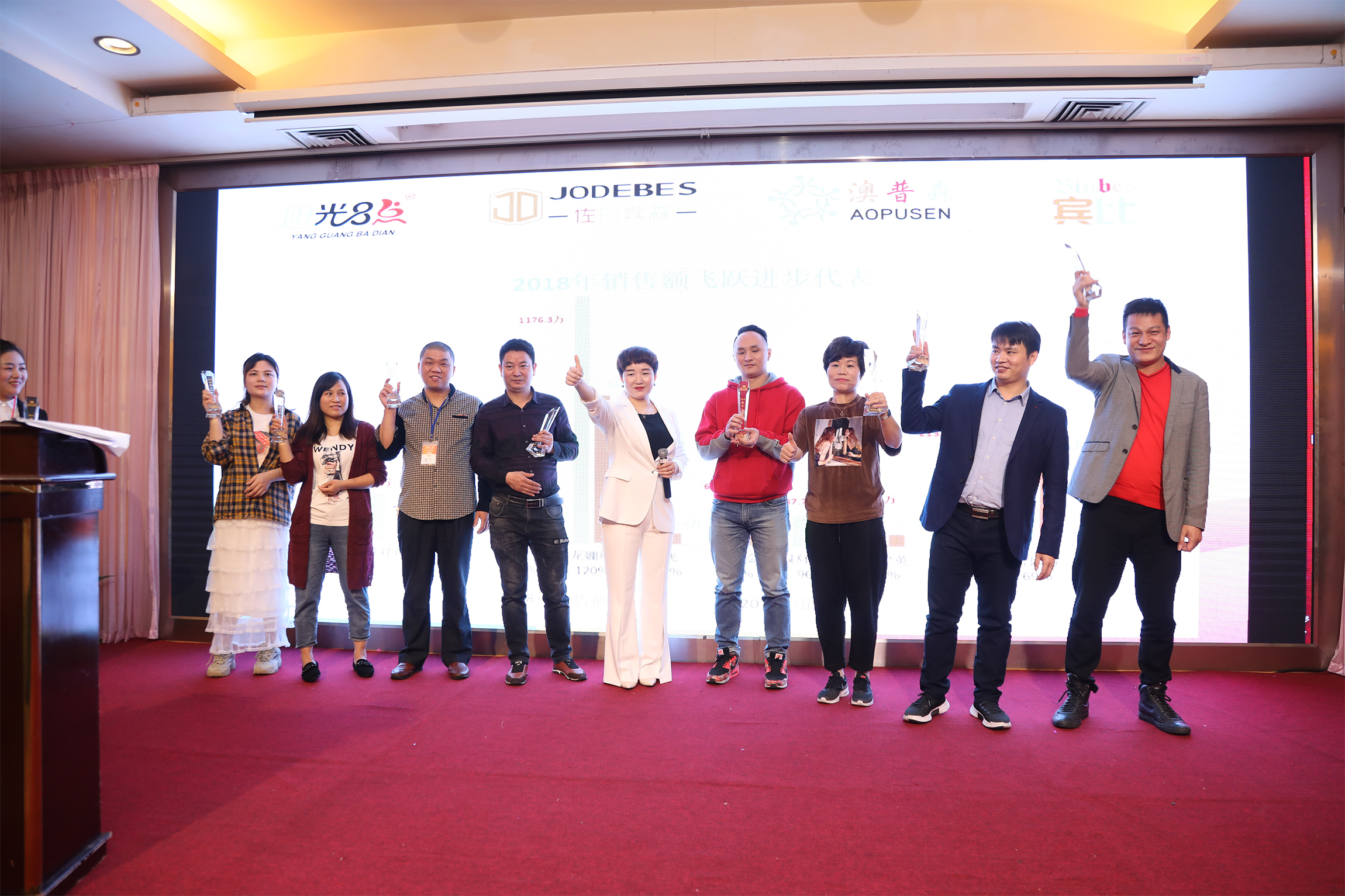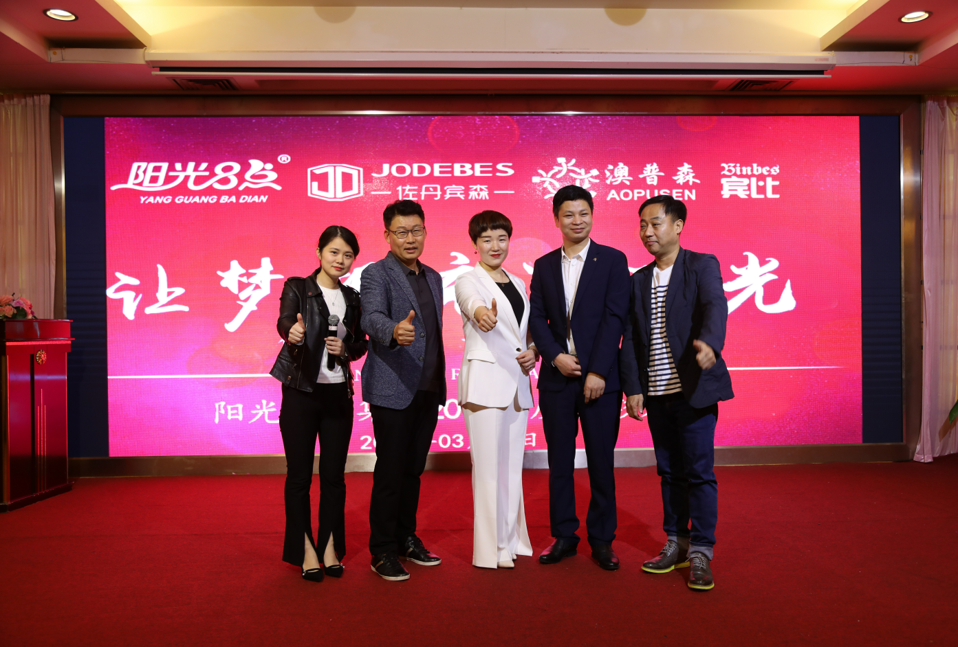 陽光8點&佐丹賓森&澳普森&賓比2018年度表彰大會暨2019年大學汛新品發布會于3月17日在廣州總部召開,來自全國的代理商齊聚一堂,共享時尚盛宴。為期三天的陽光8點&佐丹賓森&澳普森&賓比2019年春夏新品發布會在大家的支持下勝利召開。