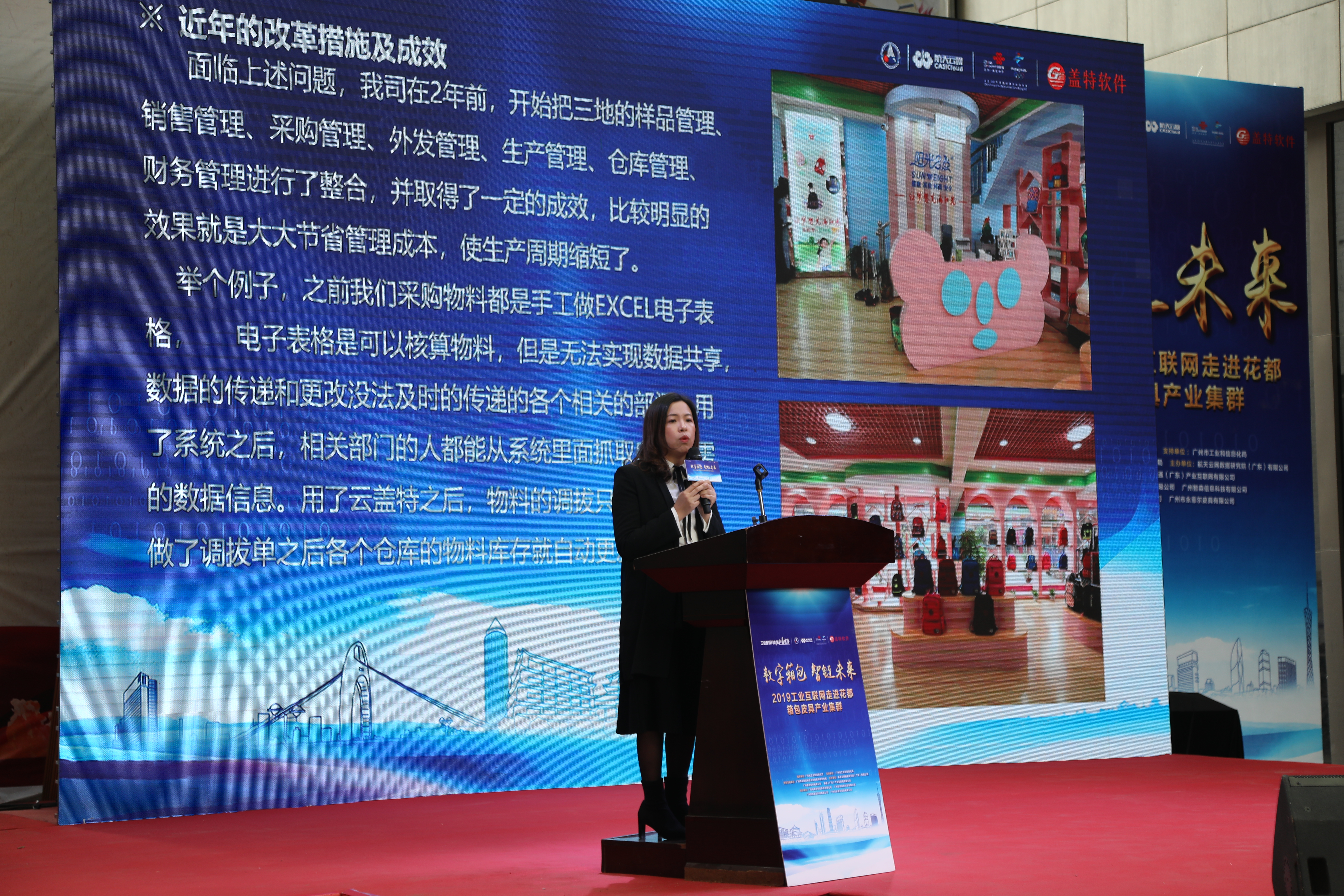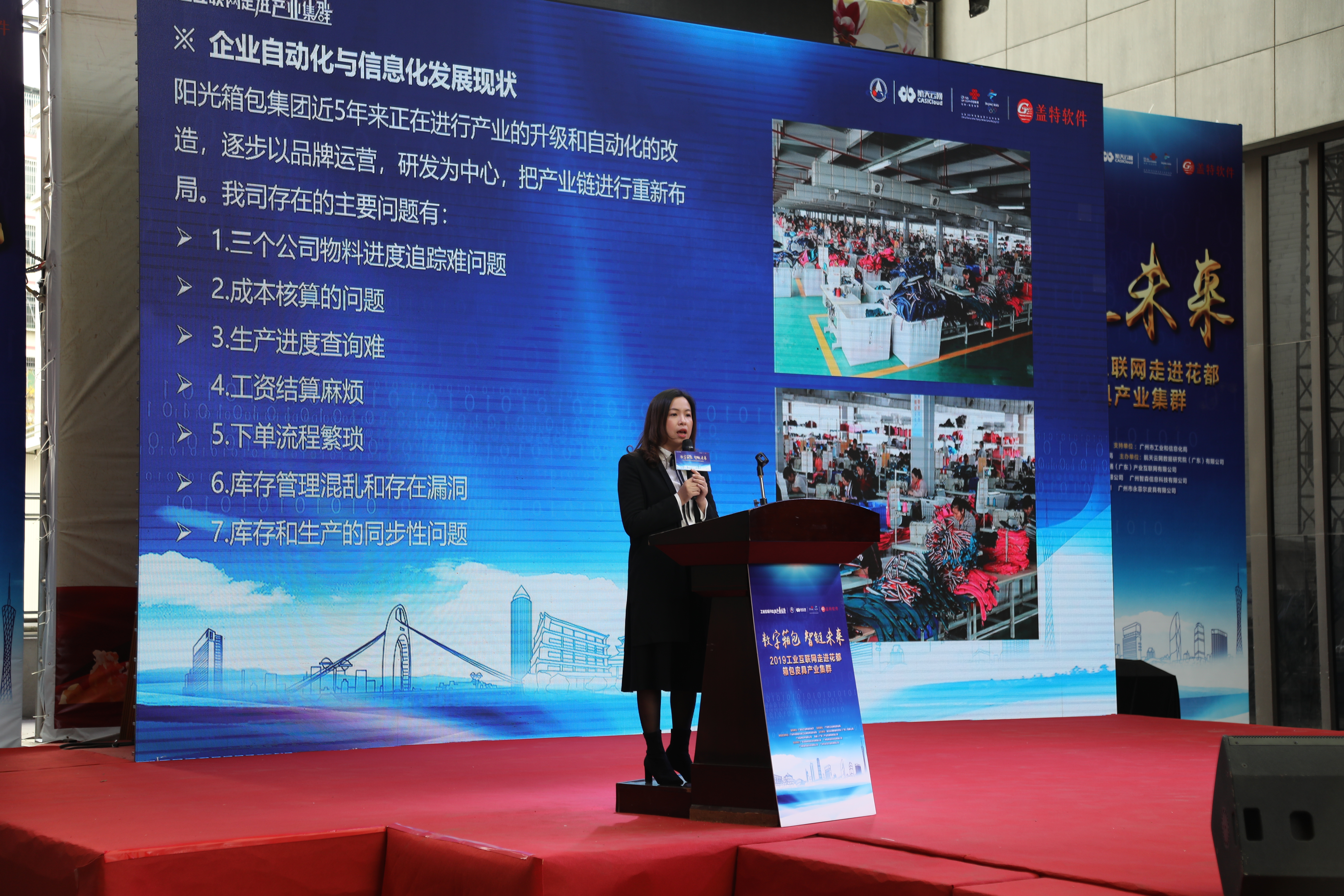 下午2點,由廣東省工業和信息化廳、廣州市工業和信息化局、廣州蓋特軟件有限公司等單位舉辦的“2019工業互聯網走進花都箱包皮具產業集群”會議在獅嶺召開了。