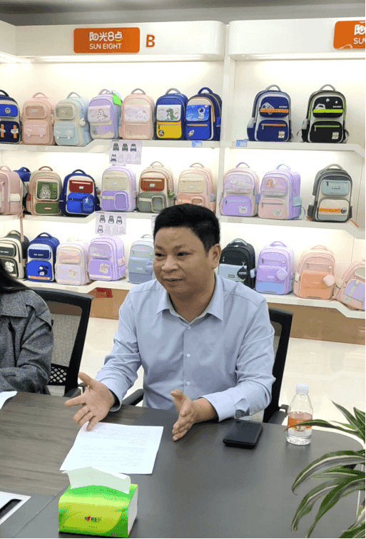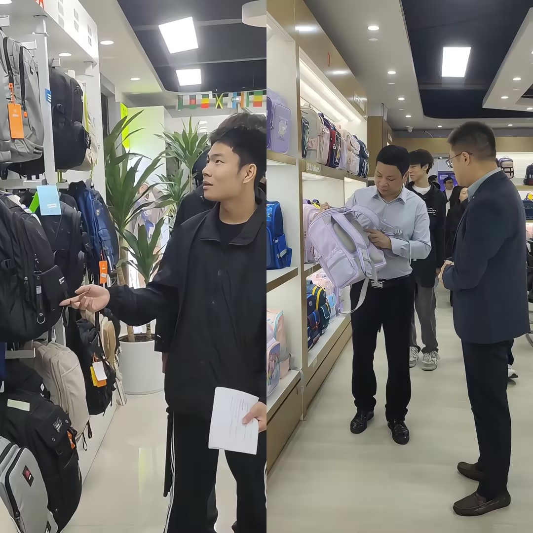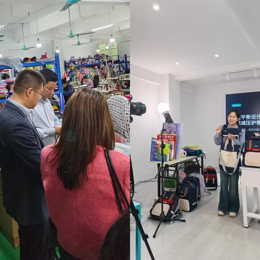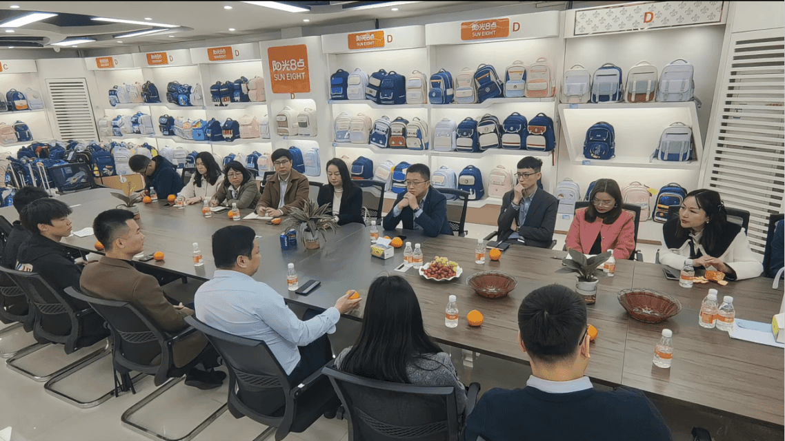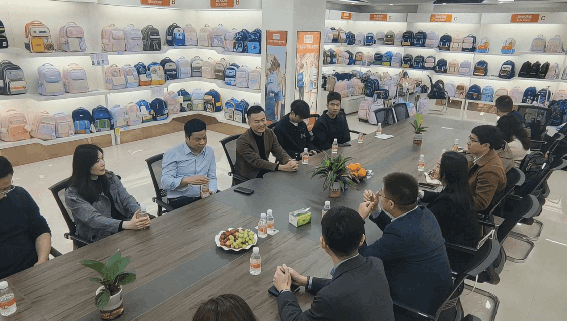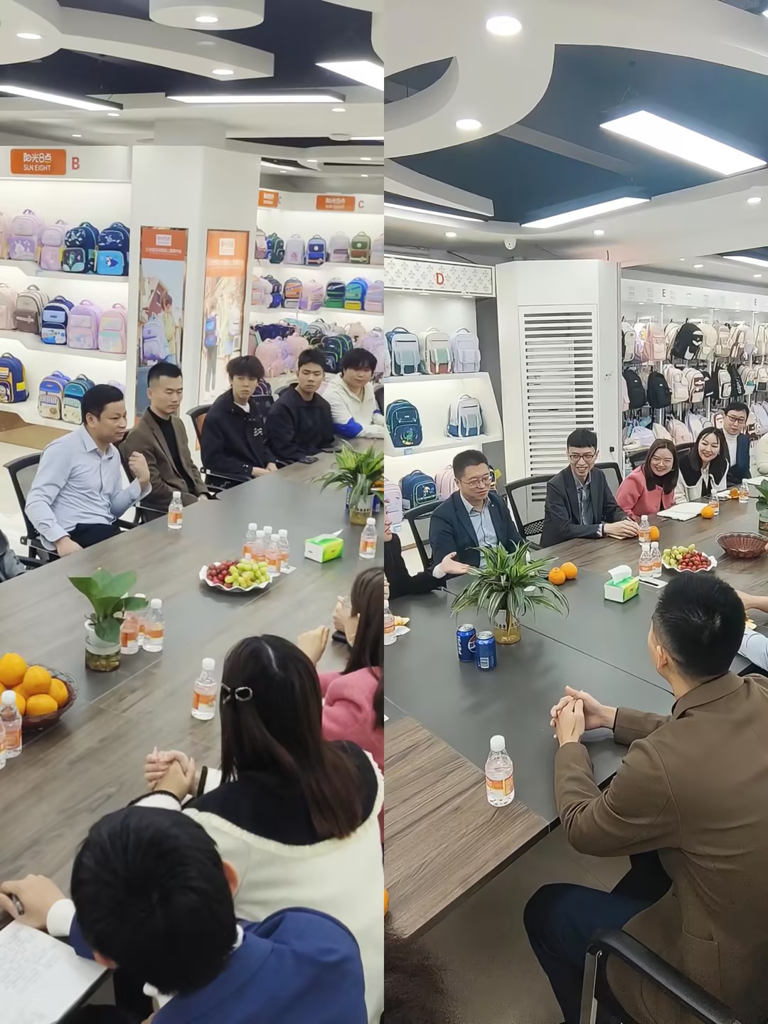 袁董事長對他們的到來表示熱烈歡迎,并引領他們參觀了集團品牌運營中心各個業務板塊,深入介紹箱包生產從“研發設計-物料采購-打樣生產”再到線上電商直播的現場,全面展示了集團從后端制造到前端銷售的每一個環節。