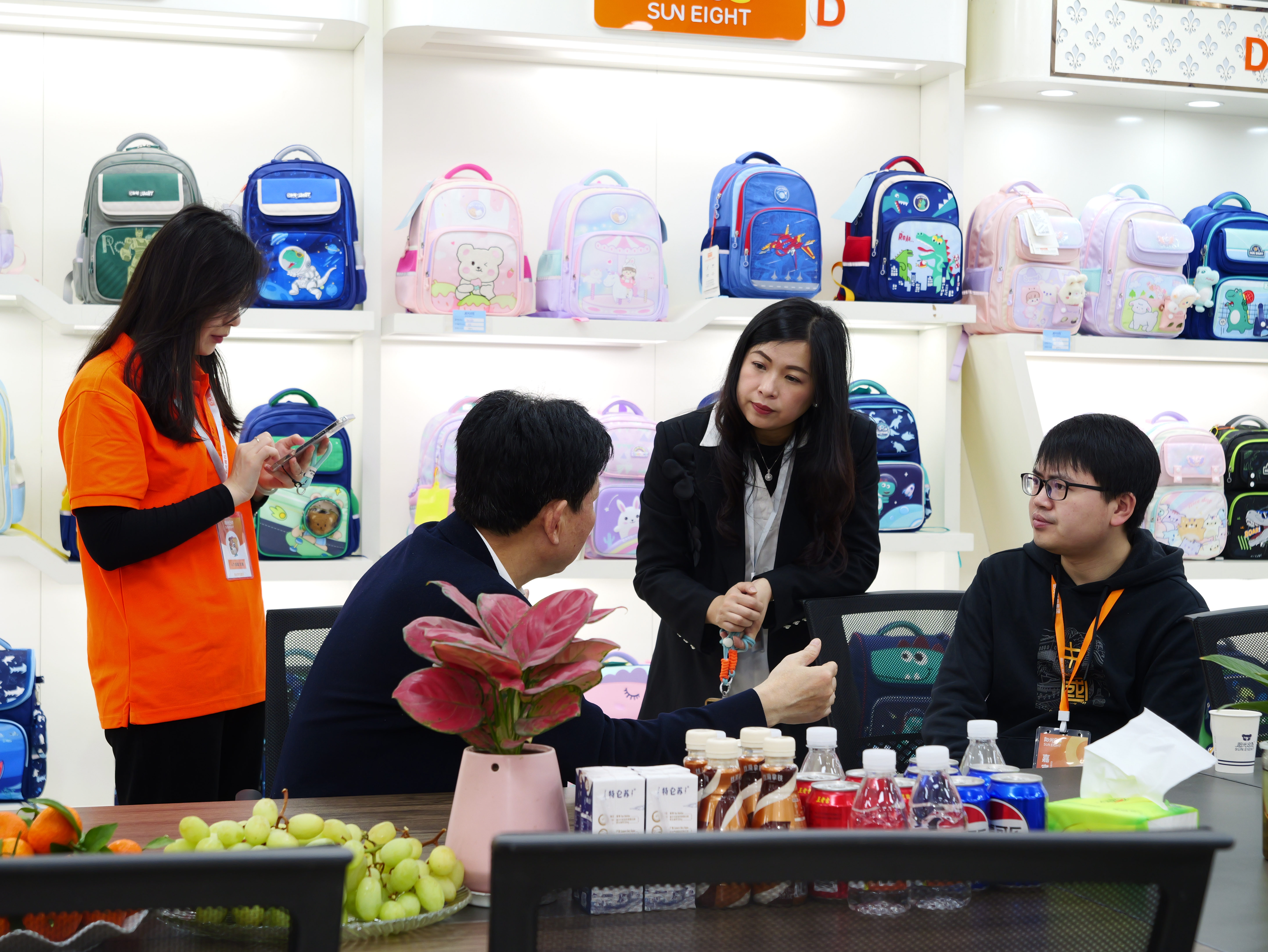 各展廳里,人頭攢動(dòng),熱鬧非凡,來(lái)自全國(guó)各地的伙伴們,三五成群,圍繞在各系列前,仔細(xì)端詳,熱烈討論。有人用手觸摸書包面料的質(zhì)感,有人拿起書包仔細(xì)查看工藝品質(zhì),大家一起品鑒新品發(fā)布會(huì)。