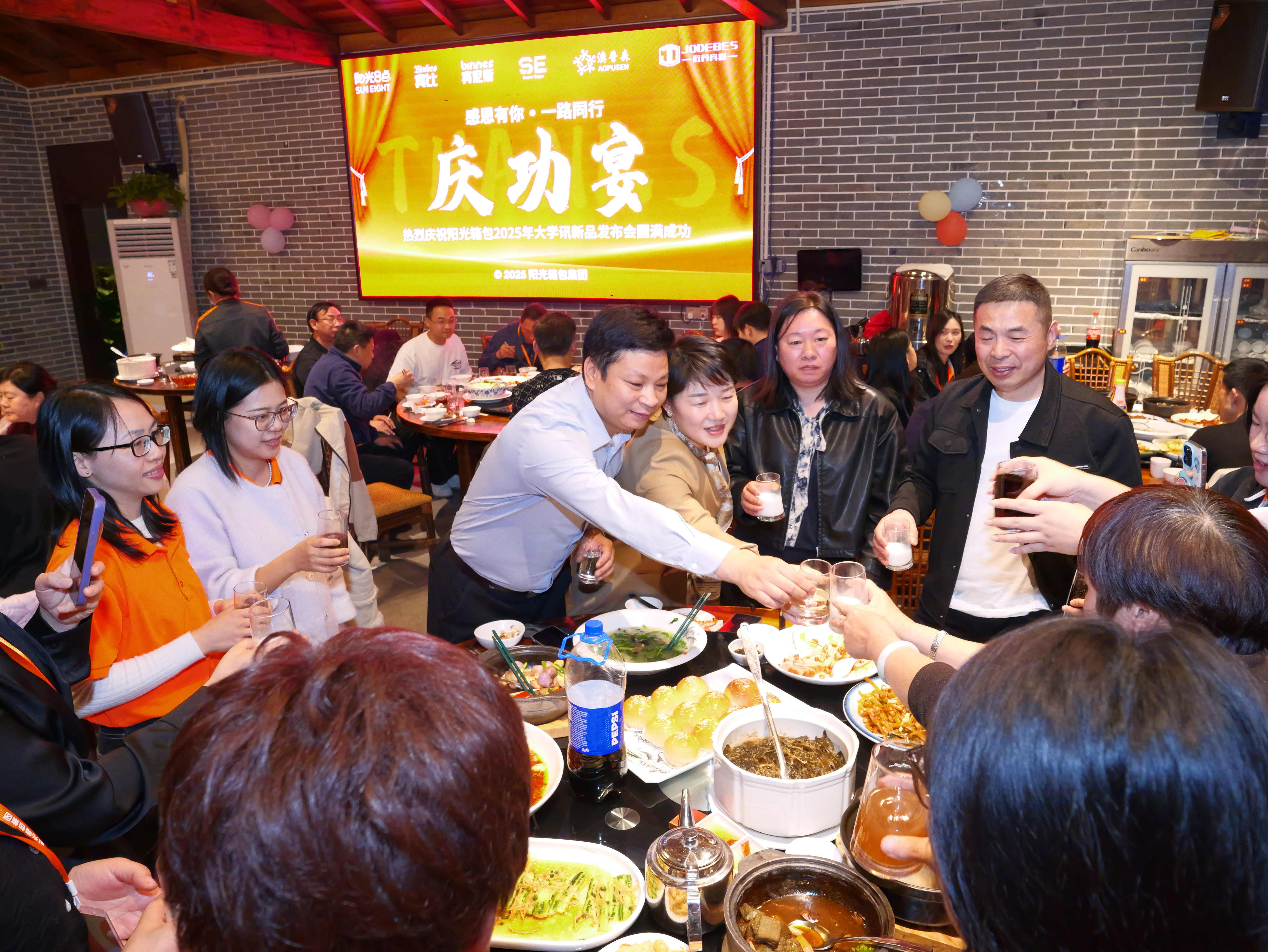 新品發(fā)布會(huì)結(jié)束后,一場(chǎng)盛大的慶功宴將活動(dòng)推向高潮,一段氣勢(shì)磅礴的鼓舞,讓全場(chǎng)熱情高漲。大家高舉酒杯,喊著 “陽(yáng)光八點(diǎn),讓夢(mèng)想充滿陽(yáng)光” 的口號(hào),共慶盛會(huì)圓滿成功。