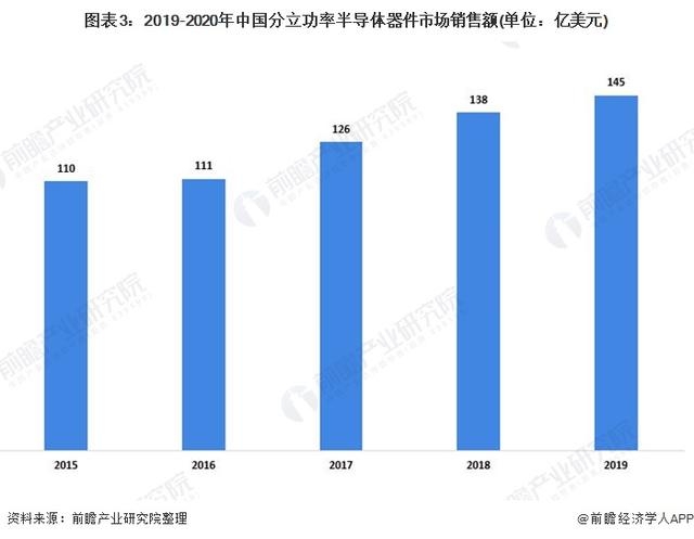 半導(dǎo)體分立器件主要用于各類電子設(shè)備的整流、穩(wěn)壓、開關(guān)、混頻、放大等,具有廣泛的應(yīng)用范圍和不可替代性。目前半導(dǎo)體分立器件產(chǎn)業(yè)通常沿著功率、頻率和微型化等方向發(fā)展,形成了新的器件理論和新的封裝結(jié)構(gòu),各種新型半導(dǎo)體分立器件產(chǎn)品不斷上市,促進(jìn)著電子信息技術(shù)的快速發(fā)展。在中國市場(chǎng),分立功率半導(dǎo)體器件的市場(chǎng)規(guī)模呈現(xiàn)增長(zhǎng),由2015年的110億美元增至2019年的145億美元,復(fù)合年增長(zhǎng)率約7.3%。展望未來,依據(jù)全球需求的普遍上升,加上中國制造分立器件如MOSFET、二極管及三極管的龐大產(chǎn)能,市場(chǎng)規(guī)模預(yù)期將會(huì)持續(xù)增長(zhǎng)。