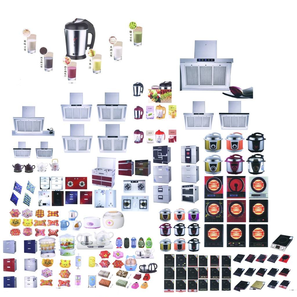 一.廚房電器:油煙機.灶具.洗碗機.消毒碗柜.豆?jié){機.果汁機.咖啡機.電飯煲.微波爐.電磁爐.電餅鐺.電壓力鍋.電烤箱.電煎鍋.面包機.煮蛋器.打蛋機.廚寶.削皮機. 刨冰機.疏果調(diào)理機.解毒機.燒烤電器等