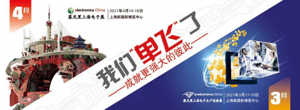 慕尼黑上海電子展將于2021年4月14-16日在上海新國際博覽中心舉辦,展會規模也將擴大一倍,現場將匯聚近1000家國內外優質電子企業,圍繞智慧工廠、智能網聯汽車及測試、新能源汽車、人工智能、5G、物聯網技術、工業互聯網、數字能源、智慧醫療、智慧生活等,為行業打造從產品設計到應用落地的橫跨產業上下游的專業展示平臺?!皢物w”后的electronica China和Productronica China將分別以更龐大的規模、更豐富的資源、更專業的服務為中國電子市場持續注入新動能,與中國電子產業攜手共進!