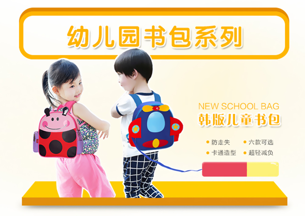 幼兒卡通書包系列:時尚設計/給寶貝的禮物,一起歡笑的童年!設有防走失牽引繩/卡通圖案;給寶貝帶來舒適背負的體驗!